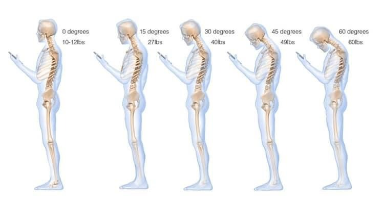 4 uur per dag kijken we gemiddeld naar ons telefoonscherm. En als we de onderzoeken moeten geloven is dat niet zonder gevolg. Want door de gebogen houding van je nek, ontstaat er extra druk 12 tot 27 kg op je wervelkolom. Dat zijn 4 bowlingballen.